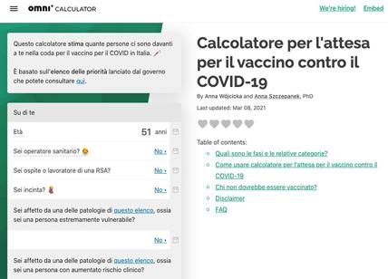 Quando verremo chiamati a fare il vaccino anti Covid? Se avete intenzione di vaccinarvi il sito Omni Calculator prova a trovare quando verrete chiamati (clicca qui), valutando le previsioni di approvvigionamento e il piano strategico vaccinale.